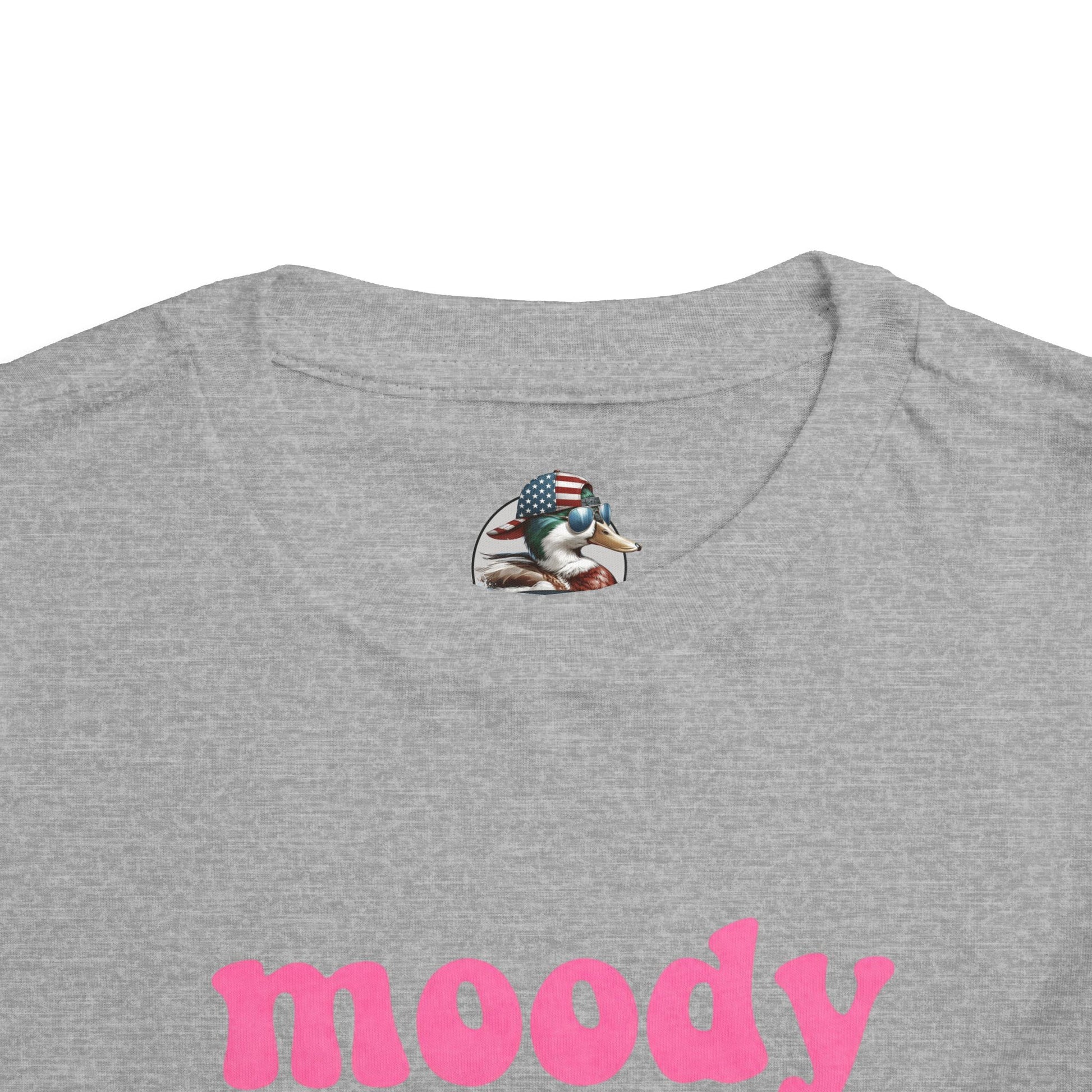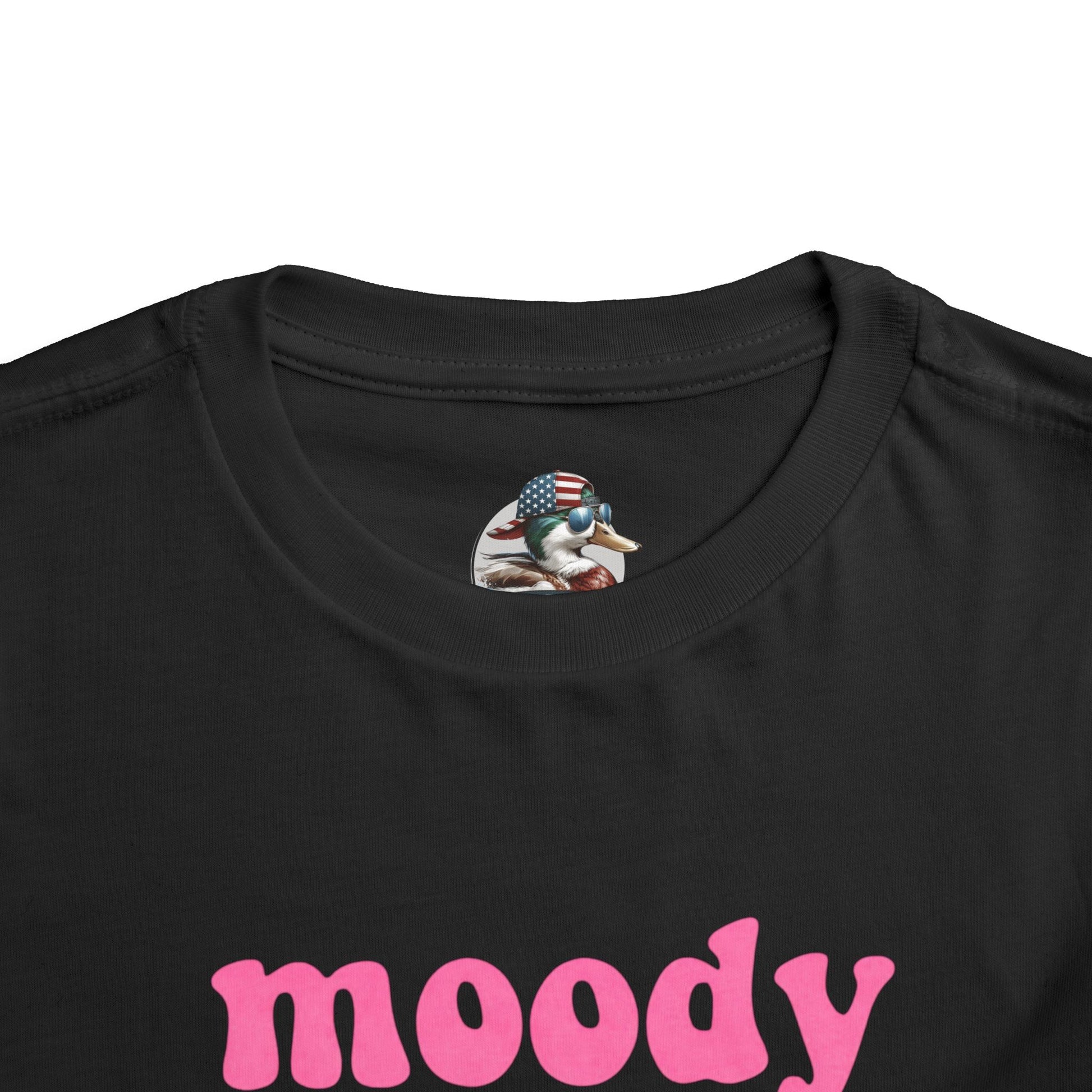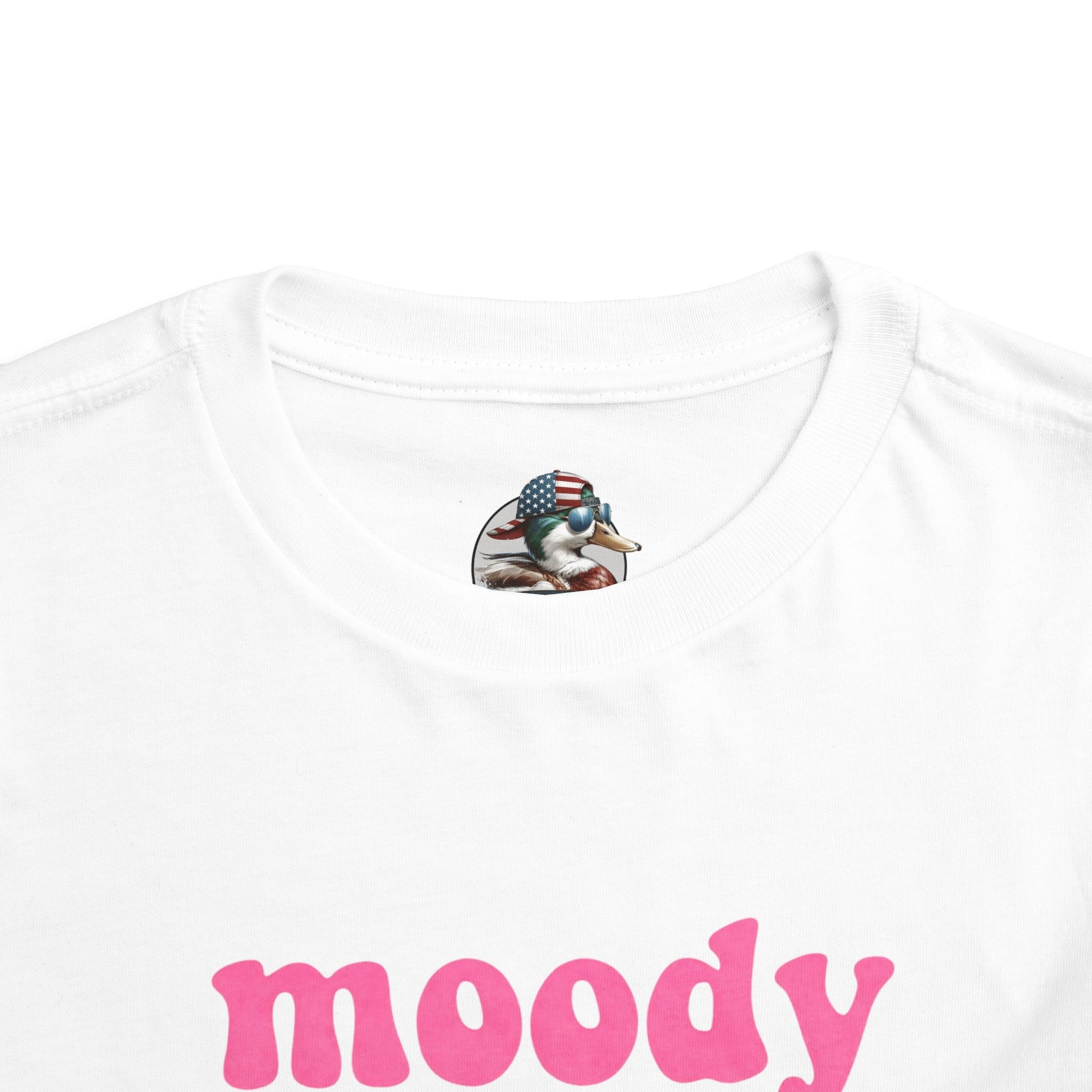 Soft, lightweight toddler tee with playful attitude. The shirt reads “moody little shit” in chunky pink lettering — a cheeky, irreverent statement for parents who love humor and personality in their kid’s wardrobe. The fabric feels smooth against sensitive skin, with side seams that keep the cut structured and comfortable through playtime. It layers easily under a cardigan or pairs with shorts for sunny days at the park. This tee brings a wink of personality to everyday moments and small adventures, matching a family who enjoys laughter, honesty, and a little sass in their style.