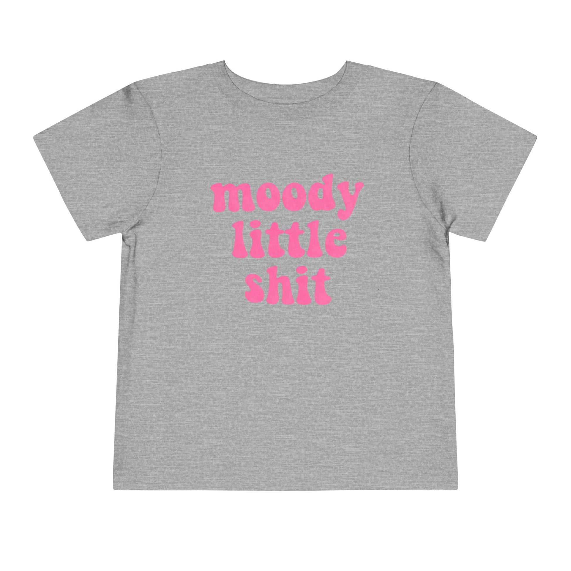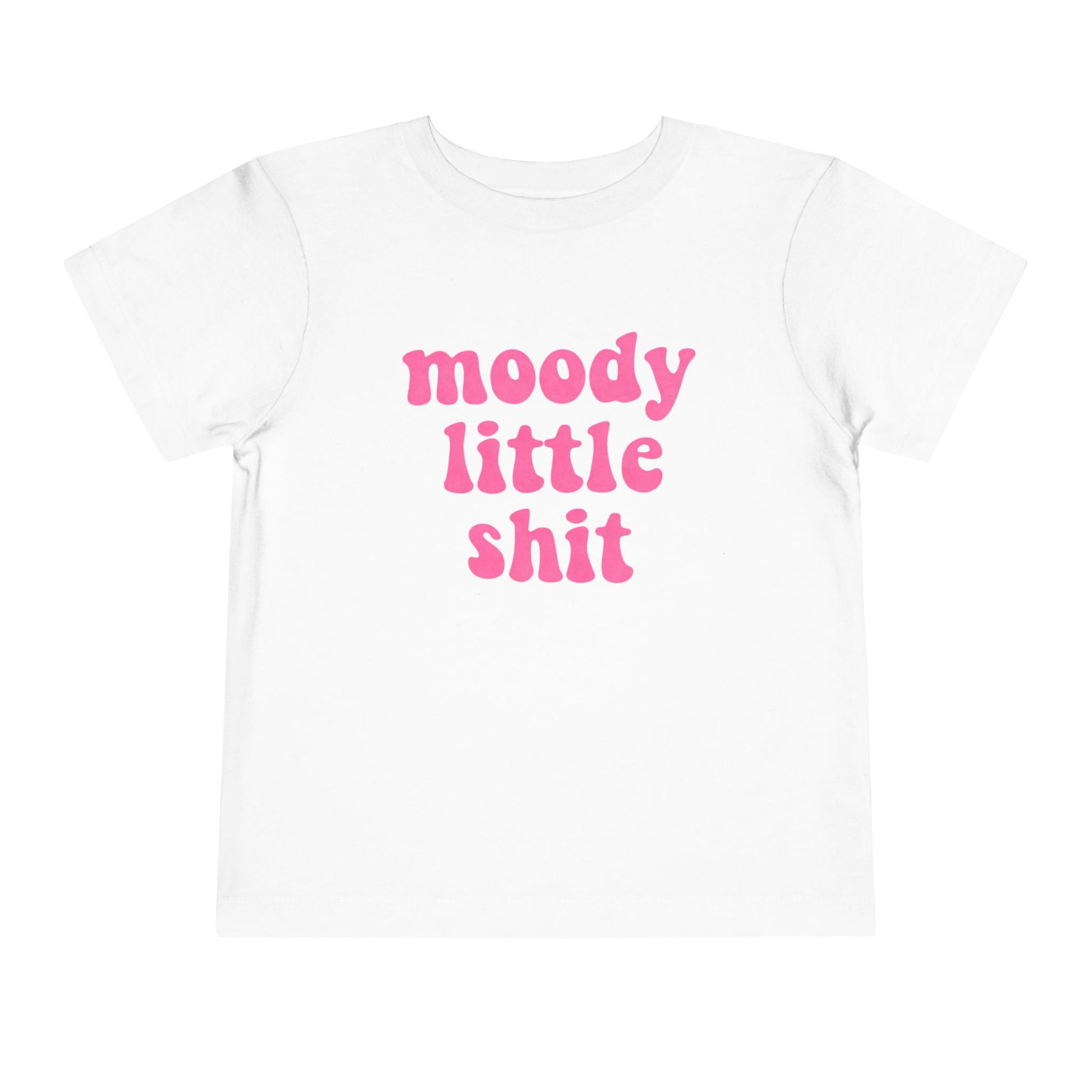 Toddler Tee — "moody little shit" Pink Retro Font